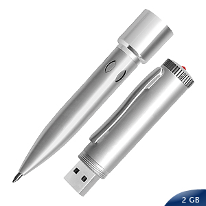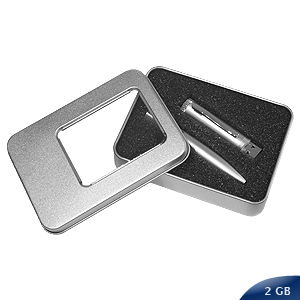 Bolígrafo metálico con USB Pendrive 2 GB incorporado. Presentación en elegante estuche de aluminio con ventana.