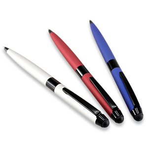 Bolígrafo Metálico modelo «Bauhaus», cuerpo satinado color mate, con goma posterior negra «Touch-Screen» para pantalla táctil. Escritura negra.