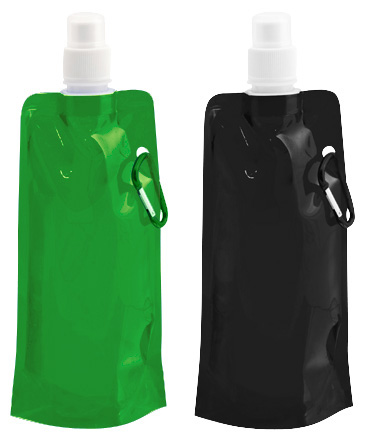 Botella de Plástico Biodegradable PET, con Mosquetón para colgar. Producto libre de BPA. Liviana y flexible, ideal para llevar a cualquier lugar, ya que vacía se puede plegar para transportar incluso dentro del bolsillo.