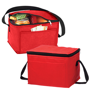 Cooler-Lonchera con bolsillo delantero. Tela exterior TNT 80grs. Tela interior PVC metalizado aislante.