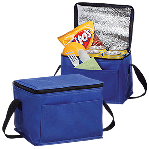 Cooler-Lonchera con bolsillo delantero. Tela exterior TNT 80grs. Tela interior PVC metalizado aislante.