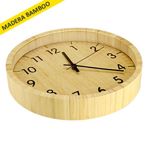 Deluxe Reloj análogo redondo de pared, 100% madera Bamboo.