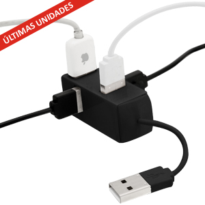 HUB 4 puertos USB rectangular. Con puertos USB en distintas caras, lo que lo hace más funcional.