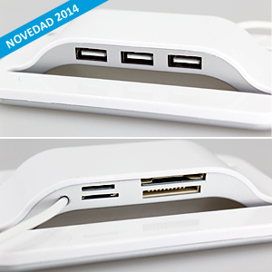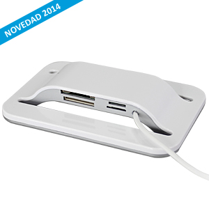 Hub con 3 puertos USB 2.0 y Multilector de Tarjetas de Memoria SD, Micro SD, MS y M2. Amplia área de impresión. Presentación en caja de regalo de cartulina negra.