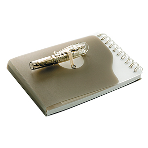 Libreta de Apuntes 68 hojas, con Bolígrafo 8 cm. incluido. Tapa y contratapa plásticas rígidas en colores empavonados.