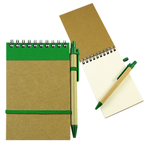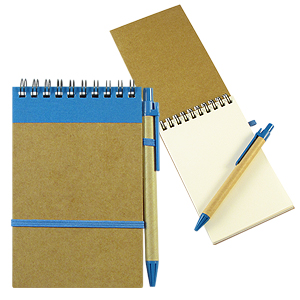 Libreta Ecológica con tapas de cartón reciclado, 70 hojas interiores blancas (croqueras). Incluye cierre elasticado de color y bolígrafo ecológico al tono.