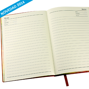 Fina Libreta – Memo con cubierta de Eco-Cuero barnizado. Interior 80 hojas lineadas color crema de 80g/m2. Información: Calendarios 2015 – 2016 – 2017, Códigos Discado Directo de Area nacional e internacional, Agenda telefónica.