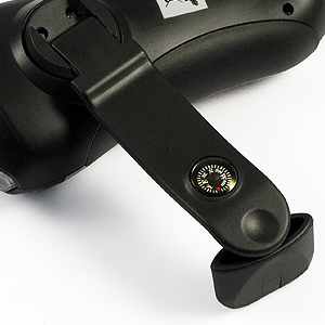 Linterna Dínamo «Profesional» con 5 LED. Incluye switch de ahorro de energía 3 LED, Sirena, Cable USB con adaptador mini-USB, Manivela de recarga manual, Mini-Brújula, Huincha gris para transportar.