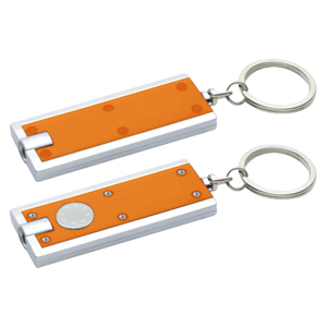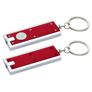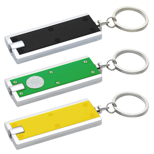 Llavero-Linterna «Clásico» de 1 LED, con cuerpo plástico frozen y botón pulsador plateado. Presentación en cajita plateada.