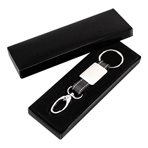 Llavero Metal-Cuero modelo «Technic». Presentación en estuche laminado negro con cuna aterciopelada.