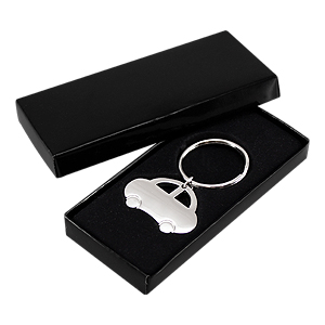 Llavero Metálico Automóvil. Presentación en estuche laminado negro con cuna aterciopelada.