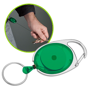 Llavero con Mosquetón y extensor retráctil, en color traslúcido.