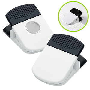 Magne-Clip Grande con base cuadrada y mango de goma negra. Amplia superficie para impresión de logo.
