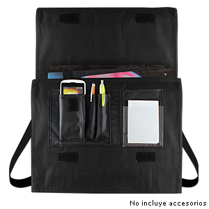 Maletín Portadocumentos de tela raquelada Polyester 600D modelo «Java», con solapa y bolsillo interior multi-accesorios.