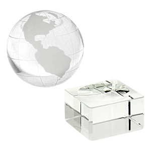 Mini Trofeo de Cristal modelo «World». Presentación en caja de cartón forrado negro.