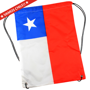 Mochila «Flag» de poliéster 210D/PU, tipo Morral. Incluye gráfica de Bandera chilena por el anverso y por el reverso es 100% blanca, ideal para impresión de logo.