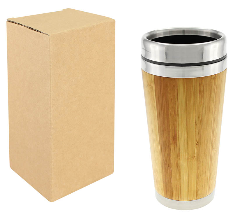 Mug de madera de Bamboo, interior de Acero Inoxidable, tapa con dosificador.