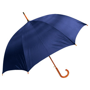 Paraguas ejecutivo con cuerpo y mango curvo de madera barnizada. Varas reforzadas de fibra de vidrio, sistema de apertura automático, 8 cascos tela Nylon 190T.