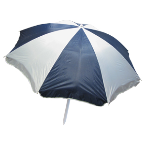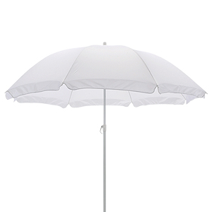 Quitasol en tela Nylon 190T. Incluye 2 varas metálicas blancas desmontables, la inferior de 101 cm. y la superior de 95 cm. Presentación en funda de PVC transparente con broche.