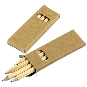 Set de 4 Lápices Grafito Negro hexagonales, en Estuche rectangular de Cartón reciclado con ventana.