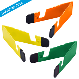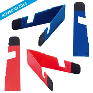 Soporte plástico abatible para iPad y Celular, con goma antideslizante en ambos terminales.