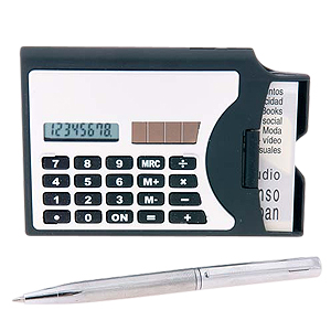 Porta-Tarjetas con Calculadora Solar de 8 dígitos y Bolígrafo incluido.