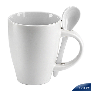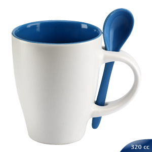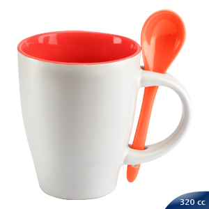 Tazón Cerámico Blanco opaco con interior y cuchara de color. Presentación en caja de cartón blanco.