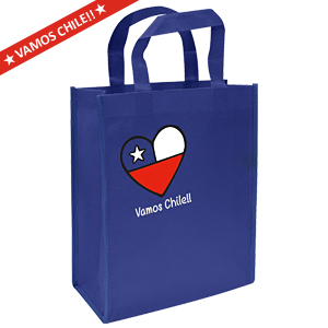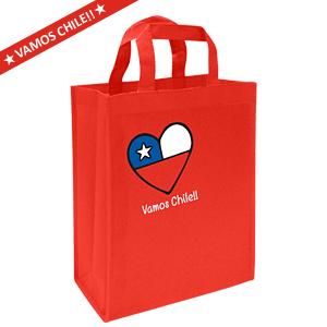 Vamos chilenos !!! A alentar a la roja de todos. Bolsa Ecológica «MEDIUM», en tela TNT, 100% reciclable y reutilizable. Cuenta con 2 asas de 30 cm. c/u aprox. Incluye impresión «Vamos Chile» a 3 colores en el frente.